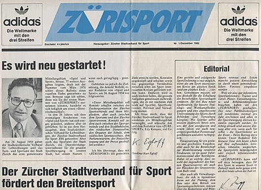 Der Zürisport erfährt einen Relaunch: Mit neuem Format und breit gefächertem Inhalt soll er die Sportgemeinde zusammenschweissen und die Voraussetzung für eine aktive Sportpolitik verbessern. Die Verbandszeitung erscheint mit einer Auflage von rund 50'000 Exemplaren (bisher 3000) und wird dank Presseförderung viermal jährlich allen Mitglieder der Stadtzürcher Sportvereine kostenlos zugestellt.